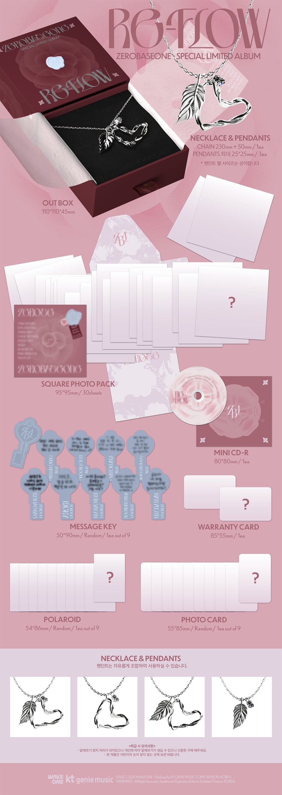 Out Box + Necklace & Pendants + Square Photo Pack + Mini CD + Random Message Key + Warranty Card + Random Polaroid + Random Photocard